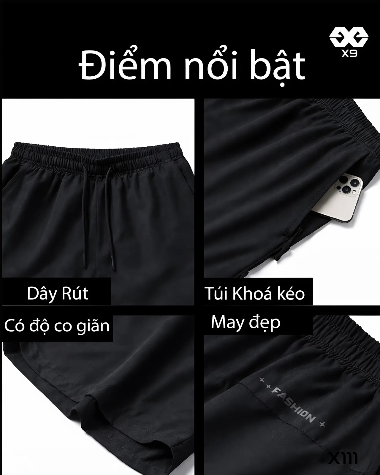 Quần Thể Thao Nam Ngắn Siêu Nhẹ Nhanh Khô 5 Inch In Chữ X9 - X111